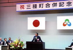 10/28 一般国道7号鷹巣大館道路起工式 。皆の思いをつなげて・・・ 道路はネットワークとしてつながってこそ意味があるのだと強調しました。 (大館市)